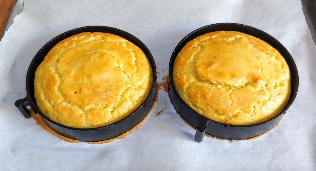 Usually I bake this cake as a sheet cake but this time divided the batter into two 8″×8″ square glass bake pans and made a square layer cake. It turned out just as well as a sheet cake. I assume it will be just as successful in two round cake pans or as cupcakes.
