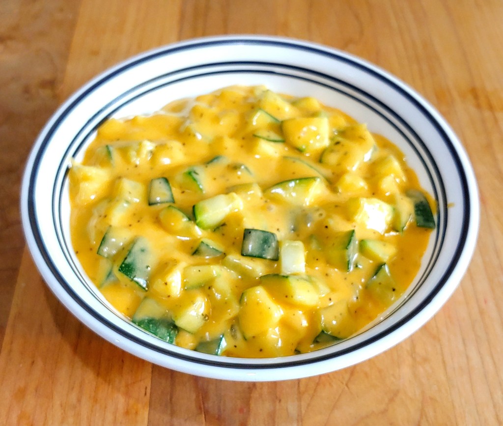 I love mac ‘n cheese, but pasta doesn’t fit into my low carb lifestyle. I’ve tried popular faux low carb mac ‘n cheese recipes using cauliflower, but the strong flavor of cauliflower makes it less like mac ‘n cheese and more like cauliflower with cheese sauce. With the abundance of zucchini from my mom’s garden, I decided to try lightly steamed zucchini instead. It turned out great; I made it so many times over the past few weeks I’ve lost track of the number of zucchinis I’ve eaten. Once I added diced mushrooms with the zucchini and it was just as good. I tried a variety of high fiber flours as thickener for the cheese sauce and lupin is my favorite, but others work, too.