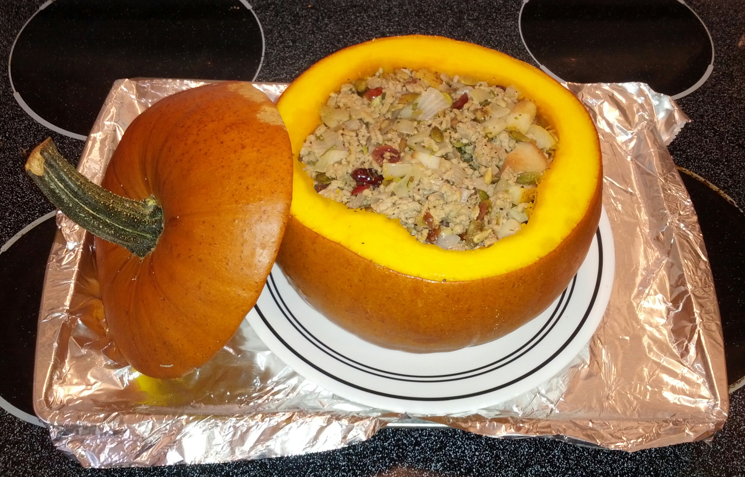 2 Responses to Pumpkin Stuffed with Turkey, Pears, and Cranberries